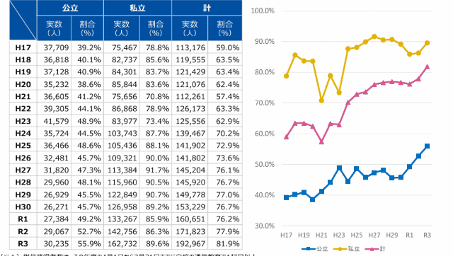 文部科学省の学校基本調査では、通信制高校の生徒数は増加しており、10代だけでなく20代〜40代以上の社会人も通信制課程を選択しています。