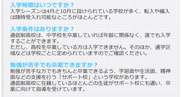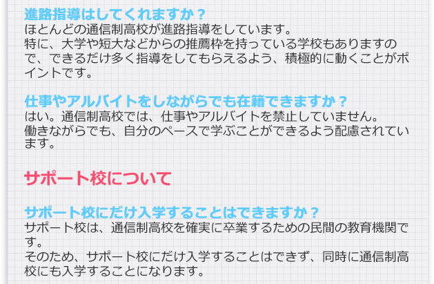 全日制の高校に通っている方や働いている方でも通信制高校に通うことができます。