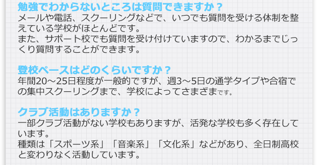 スクーリングと言って登校して授業を受ける場合もあります。通学方法に選択肢があるので自分のペースを保って通うことも可能です。