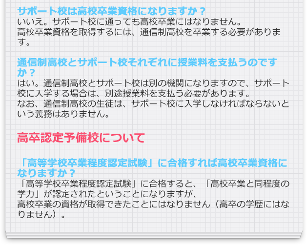 「高校卒業資格」を習得するには74単位を修得し、ホームルームなどの30単位時間履修することが必要です。